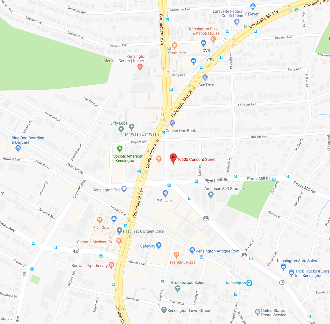 10605 Concord St • Suite 410, Kensington MD 20895 • Find Directions »